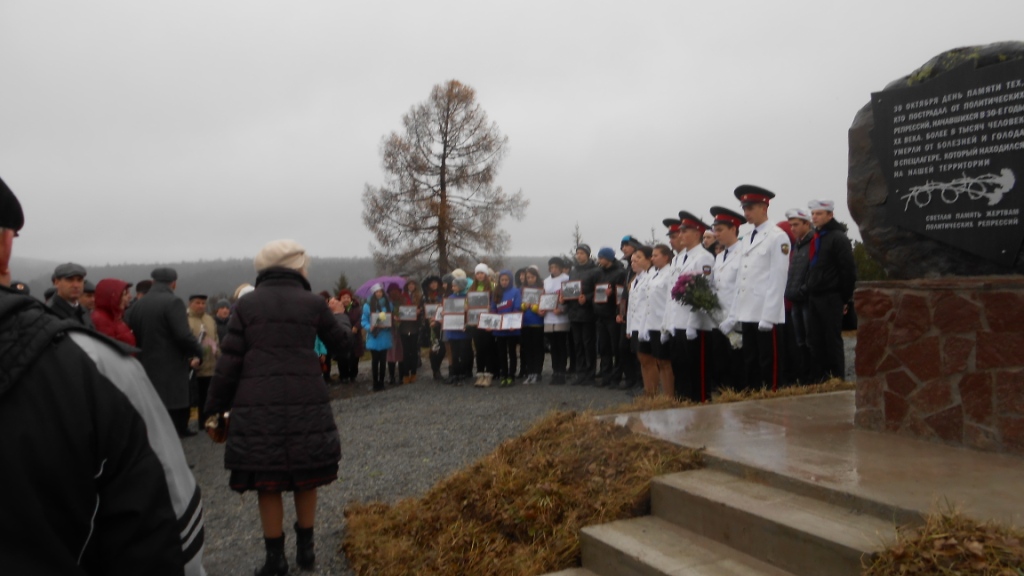 town administration, residents of Mezhgorye, relatives of settlers, schoolchildren