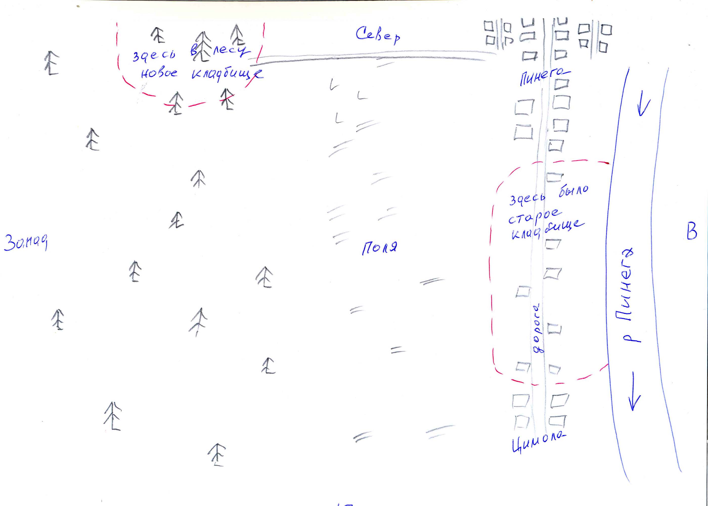 In 1943 there were 106 former Polish deportees in Pinega and a further 30 in Tsimola, the neighbouring village. Those who died were buried in the old village graveyard between the two settlements. After the war the graveyard was no longer used and today it has disappeared under residential and commercial buildings. In 2013 Bogdan Tkachuk, nephew of one of the former deportees, Juliana Michalska (died 1944), erected a cross in her memory in the Pinega settlement’s new graveyard.