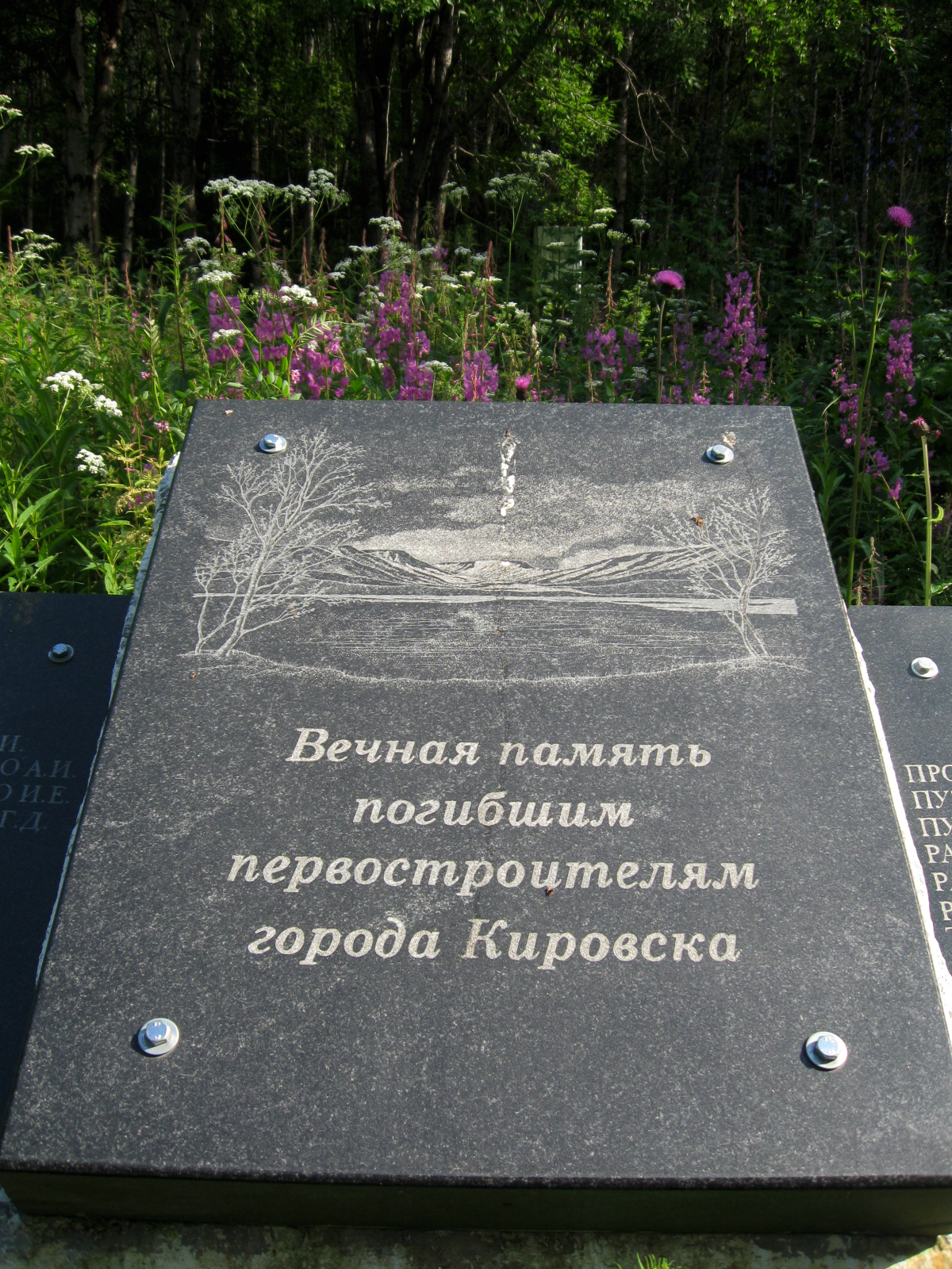 With the support of the city administration, the Khibin Memorial Society erected a commemorative sign which reads: “We shall never forget the first builders of Kirovsk who perished”; the names of the dead are recorded on plaques.