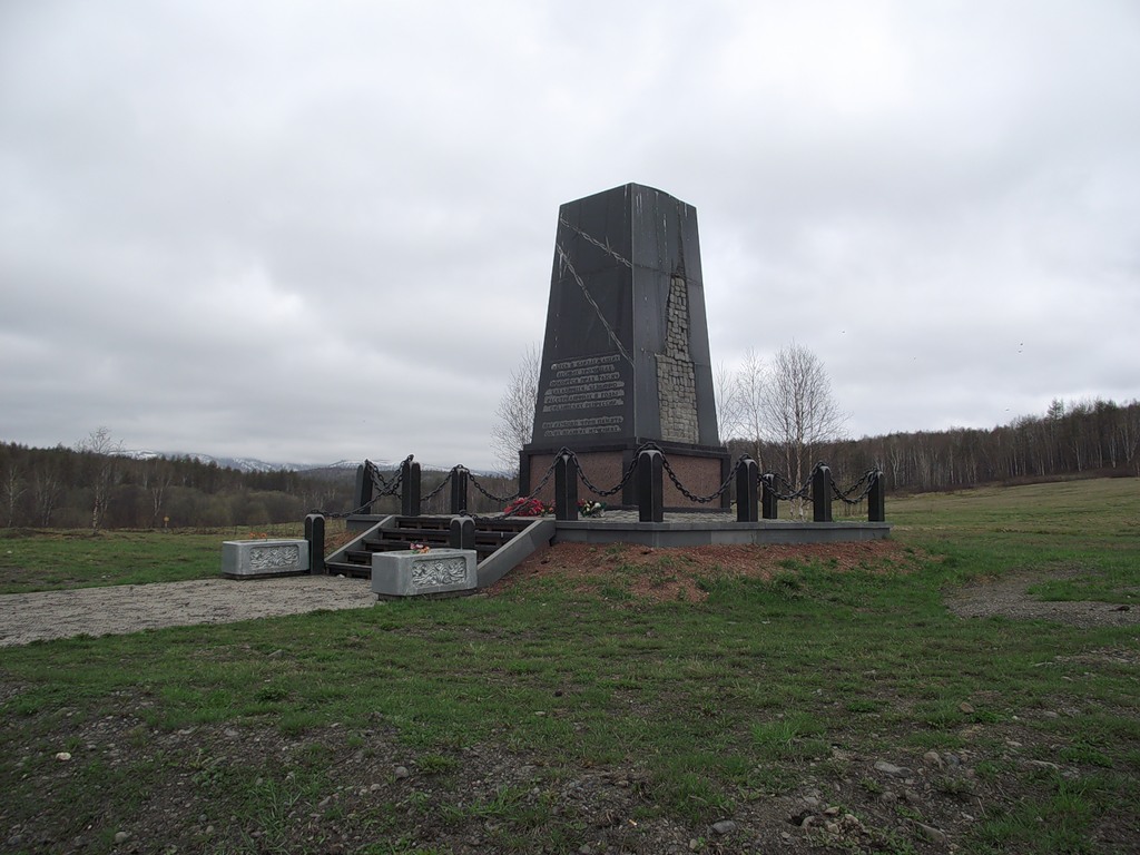 The search for the burials in the Tymovsky district was led in the late 1980s by KGB colonel V.K. Tsvetkov and after 1990 by V.Ya. Gorobets, director of the Search club. The burials were found in summer 1990 southwest of the former settlement. 65 common graves measuring 5 x 5 metres were found, according to Gorobets, and one grave of 10 x 10 metres; some of the remains were charred, suggesting that the bodies of those executed were buried. In 1991 the burial site received official status as a cemetery of the victims of political repression. In 2005 a memorial was erected on the 21st kilometre of the road from Tymovskoe to Alexandrovsk-Sakhalinsk to inhabitants of Sakhalin who were the victims of political repression.