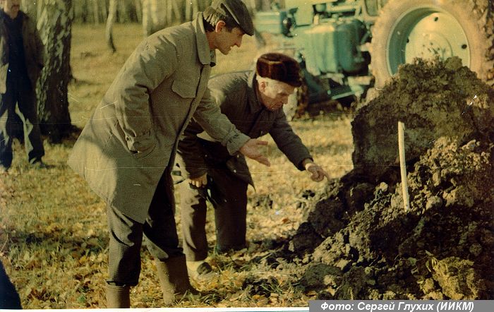 The burials were found thanks to the eyewitness testimony of G.A. Malyshkin. In 1989 the site was explored, and human remains from two of the burial pits were exhumed: a further three mass graves were identified by subsidence in the forest not far away, but they were not opened. After forensic examination the remains were reinterred in the same location. In 1993 thanks to the efforts of Bishop Eutychios (Kurochkin), incumbent of the cathedral church in Ishim, a metal memorial cross was erected next to the reburial site.